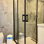 A variety of in-room amenities, including an ironing set and an air conditioner, are provided in a balcony and a dressing room. Salam Residence also includes media amenities such as a flat-screen TV with satellite channels, allowing guests to unwind at their leisure. A bathroom is equipped with a bathtub, a walk-in shower, and a separate toilet, as well as a dryer and bath sheets.